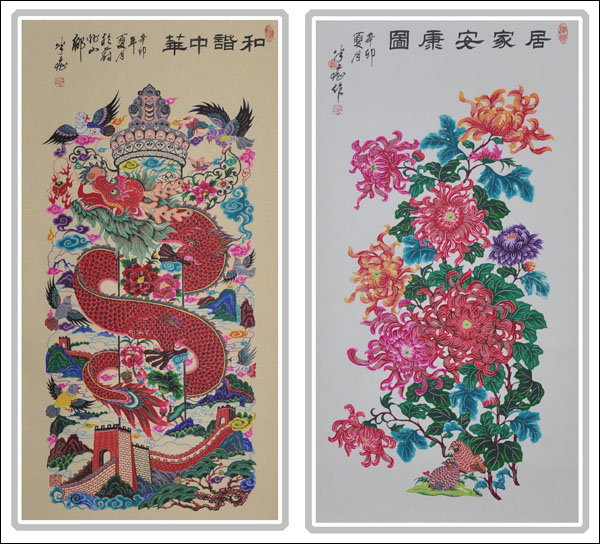 窗花,蔚县剪纸当地俗称“窗花”,不是“剪”,而是“刻”,以宣纸为原料,雕刀刻制,点染明快绚丽的色彩,风格独特。