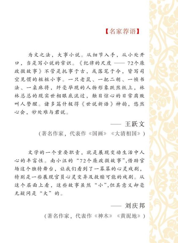 全书紧扣当前正风反腐时代脉搏,主题鲜明,构思精巧,俯拾之间皆是社情百态,走笔之处尽显百姓心声,叙事说理写情摹状,无不生动活泼、精彩迭出,令读者在轻松阅读之余收获启发和触动。